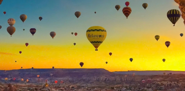 - Option 1: Bay khinh khí cầu đón bình minh: Quý khách sẽ có cơ hội chiêm ngưỡng toàn cảnh Cappadocia từ trên cao trong khoảnh khắc bình minh rực rỡ, khi mặt trời từ từ ló rạng giữa hàng trăm quả bóng bay sặc sỡ. Sau khi hạ cánh, quý khách sẽ được tham gia một buổi tiệc nhẹ ấm cúng với bánh ngọt và rượu champagne, và nhận chứng nhận (certificate) như một món quà lưu niệm đánh dấu hành trình đặc biệt này.