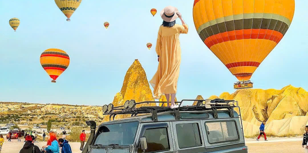 - Option 2: Jeep Safari săn bình minh: Hoặc nếu yêu thích cảm giác mạnh và khám phá địa hình, quý khách có thể lựa chọn tour Jeep Safari băng qua các thung lũng Red Valley, Rose Valley, Love Valley... để đón bình minh cùng hàng trăm quả khinh khí cầu bay lên trời, hoặc săn hoàng hôn rực rỡ giữa thiên nhiên hùng vĩ. Chuyến đi dừng chân tại điểm ngắm cảnh tuyệt đẹp, nơi quý khách có thể thưởng thức rượu vang địa phương và lưu lại những bức ảnh không thể nào quên.