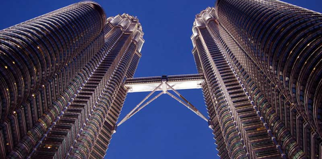 - háp Đôi Petronas - Biểu tượng hiện đại của Kuala Lumpur, nổi bật với kiến trúc tinh xảo và tầm nhìn toàn cảnh thành phố. Đây là niềm tự hào của người dân Malaysia được hoàn thành năm 1998 với tổng chiều cao 452m và 88 tầng.