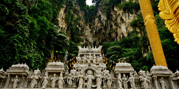 - Động Batu (Batu Cave) – Thánh địa của cộng đồng người Malaysia gốc Ấn, chiêm ngưỡng bức tượng Hindu cao nhất châu Á và chinh phục 272 bậc thang để vào tham quan các đền thờ với nhiều bức tượng độc đáo.