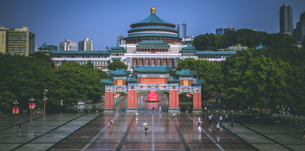 - Đại lễ đường nhân dân (chụp ảnh bên ngoài): là một trong những công trình kiến trúc biểu tượng của Trùng Khánh mà còn là nơi diễn ra các sự kiện hội nghị trọng đại, buổi biểu diễn văn hoá nghệ thuật đều được tổ chức tại đây với sức chứa hơn 3.400 người.