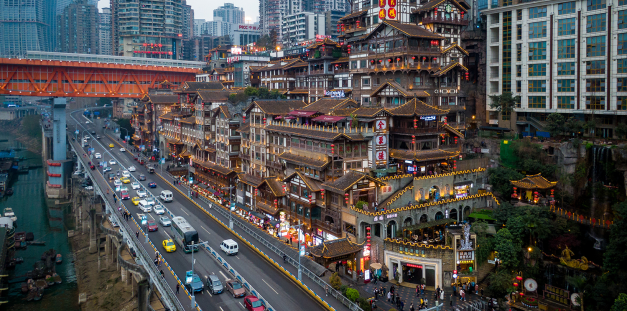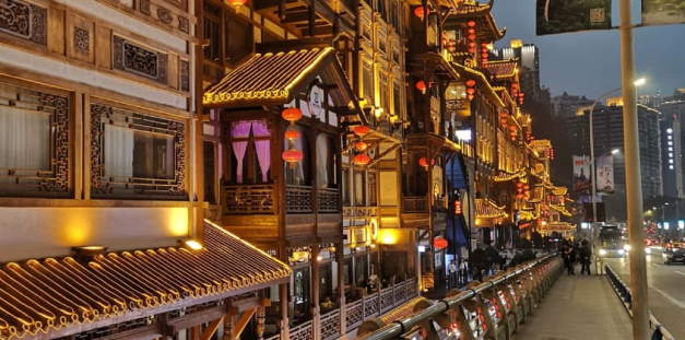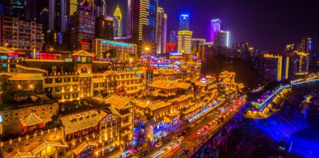 - Hồng Nhai Động - khu nhà sàn 11 tầng, cao 75 m, trên một vách đá dựng đứng tọa lạc dọc theo bờ sông Gia Lăng, đây là khu phức hợp với nhiều hàng quán thu hút khách du lịch và càng lộng lẫy hơn khi màn đêm buông xuống. Hồng Nhai Động luôn biết cách níu chân du khách thập phương, là điểm check-in cực hot khi đến Trùng Khánh.